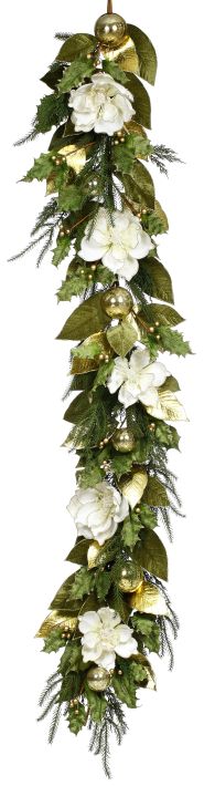 Glittered Magnolia Garland - 72 Inches, 07-40238-WHT, Free Shipping