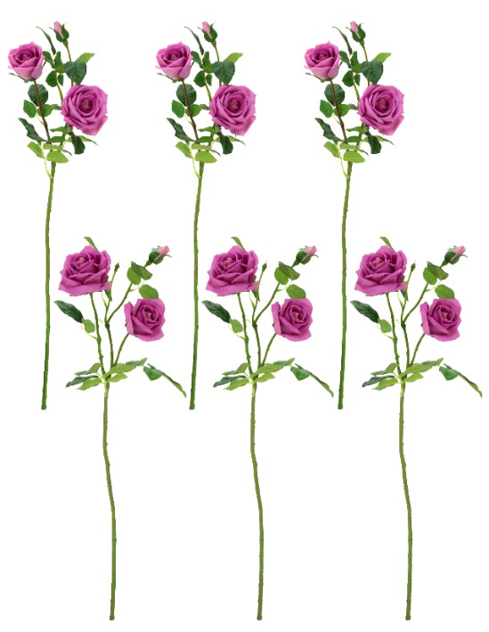 The Lavender Luscious Garden Rose Natural Touch stems feature soft lavender rose blossoms with realistic petals and texture that beautifully replicate the look of fresh garden roses. Each box includes six premium artificial stems, each measuring 31 inches, making them ideal for creating elegant arrangements with graceful height and presence. The stems come in two assorted natural growth styles, and each stem features two larger opening roses and one bud. These natural-touch roses bring timeless charm and lifelike beauty to home décor, floral arrangements, or special events—without the need for water or maintenance.