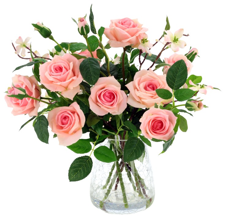 Roses in Crackle Vase - 17 Inches, AI-69268-LPK