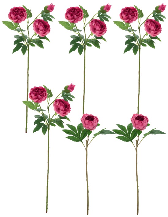 The Mark Roberts Rose Ruffled Peony Natural Touch stems are beautifully crafted artificial peonies featuring delicately ruffled petals that replicate the look and feel of real blooms. Each box includes six stems with natural-touch finishes and varying heights from 23" to 32", creating a lush, garden-inspired display. Four stems feature two large flower heads and a bud, while two stems showcase a single large bloom. These versatile peonies add lifelike color and texture to floral arrangements, bouquets, or decorative displays without the maintenance required for fresh flowers. All stems are presented in a beautiful Mark Roberts keepsake gift box with an acetate top.