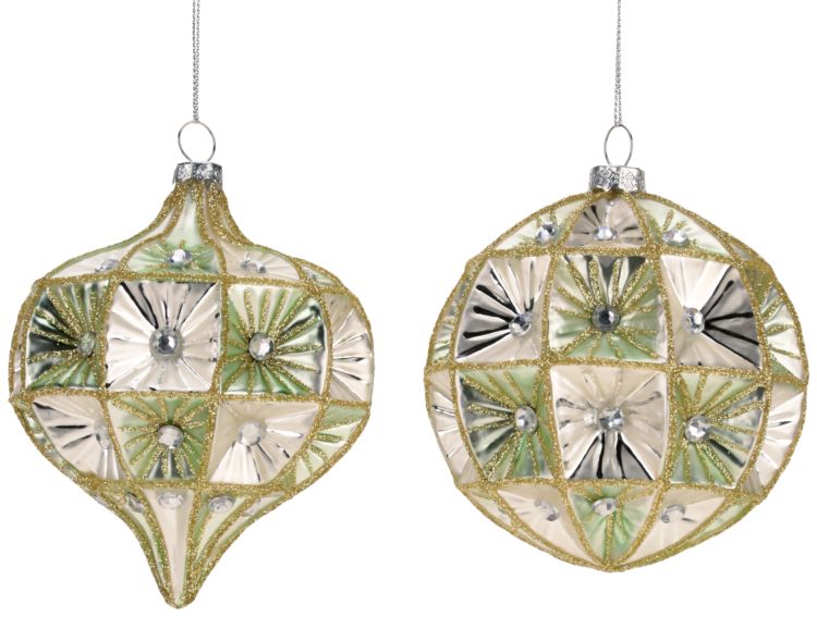 38-42808-GRN-6. Mark Roberts Christmas Decor-Ornaments. Contains an equal assortment of 2 design styles.